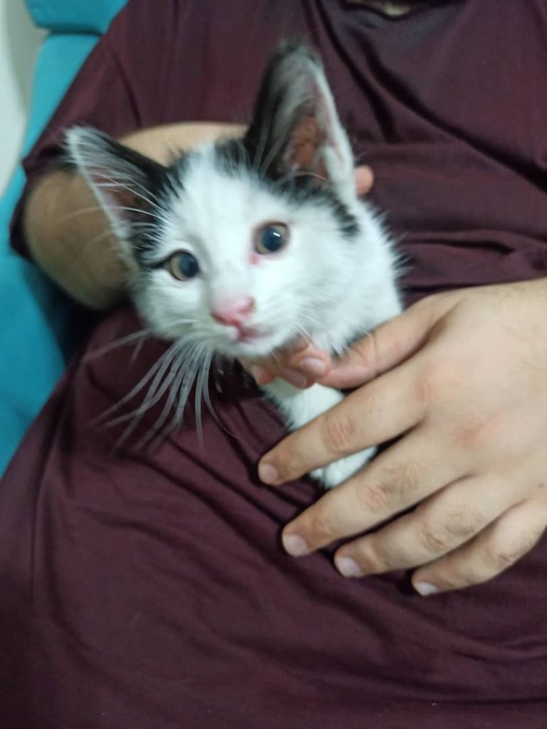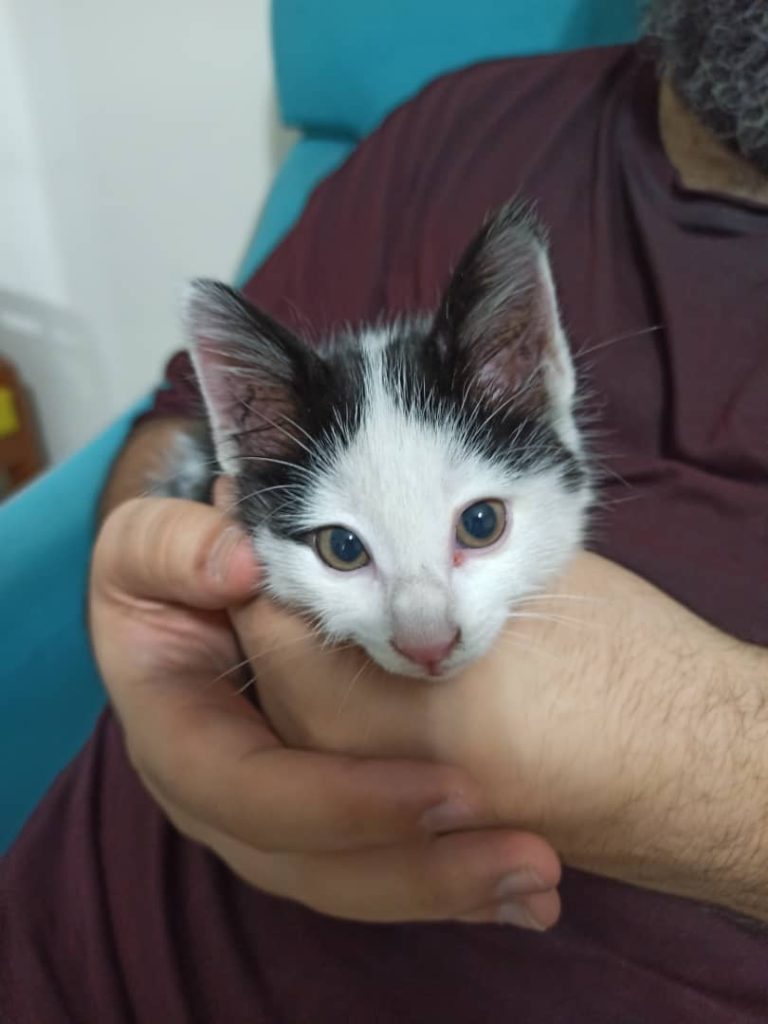 همسایه ما یه بچه گربه 6 7 هفته ای رو آورد بعد رهاش کرد.